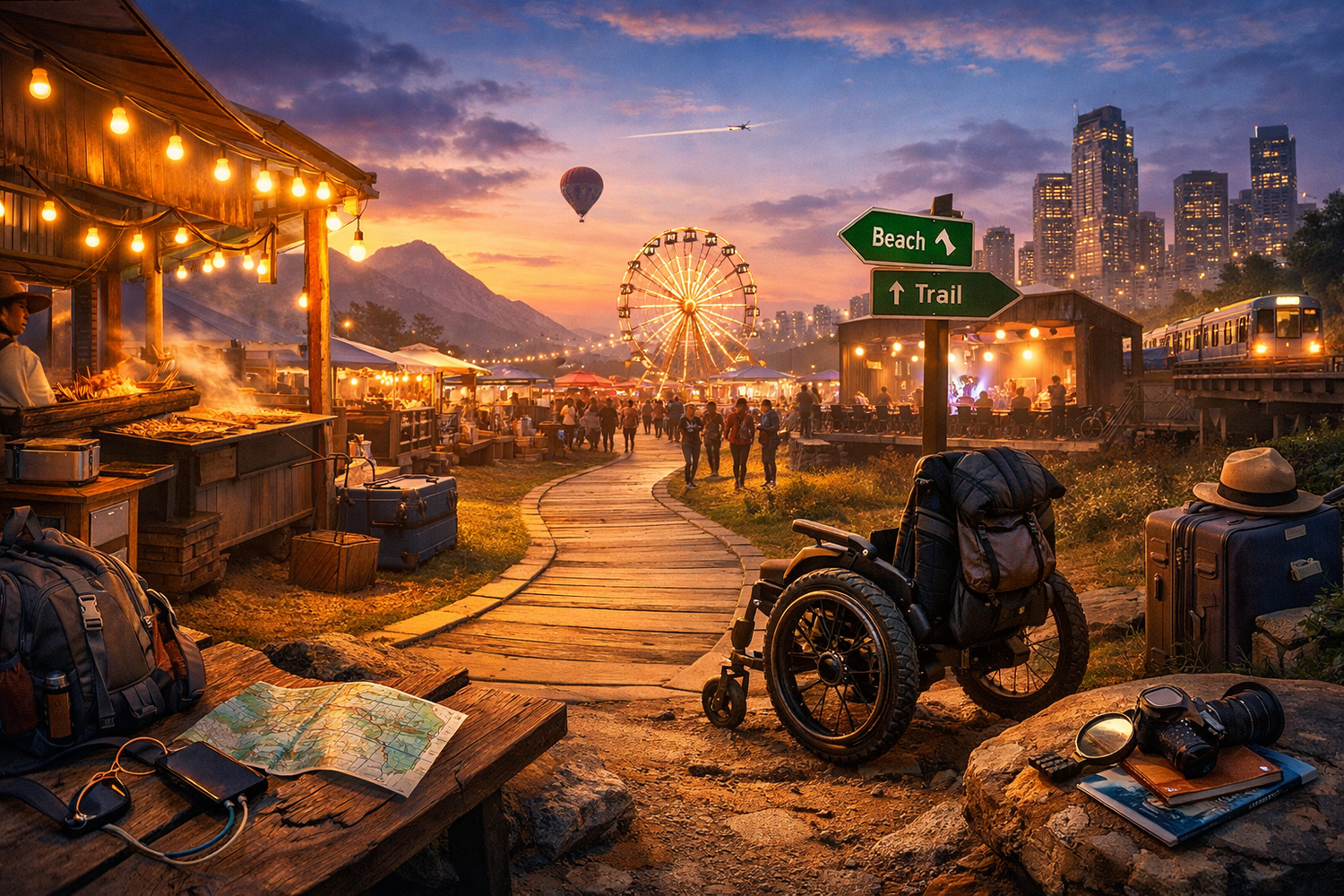 This Trail smells like street food, sunscreen, and the electric hum of “we’re actually out.” Play is adventures, shows, travel days, and public joy—with accessibility reality visible and handled with style.